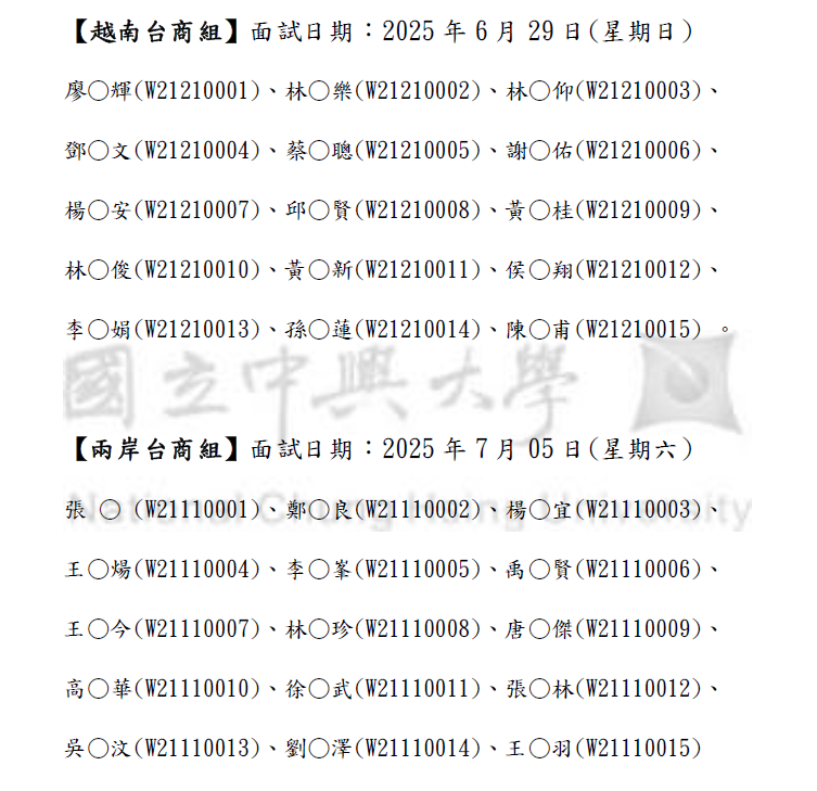 114學年度【境外碩士在職專班】入學面試名單公告