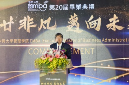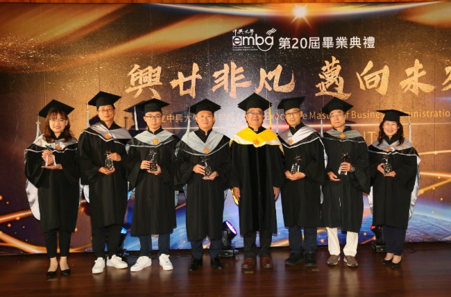 國立中興大學管理學院高階經理人碩士在職專班(EMBA)6月11日下午舉辦畢業典禮,今年以「興廿非凡‧邁向未來」為主題,期盼第20屆畢業生能夠承上啟下,協助EMBA邁向下一個輝煌不凡的二十年。典禮也邀請到興大校友總會莊嘉郁理事長、傑出校友梁火在學長以及十數位師長蒞臨,給予畢業生深深的祝福與勉勵。