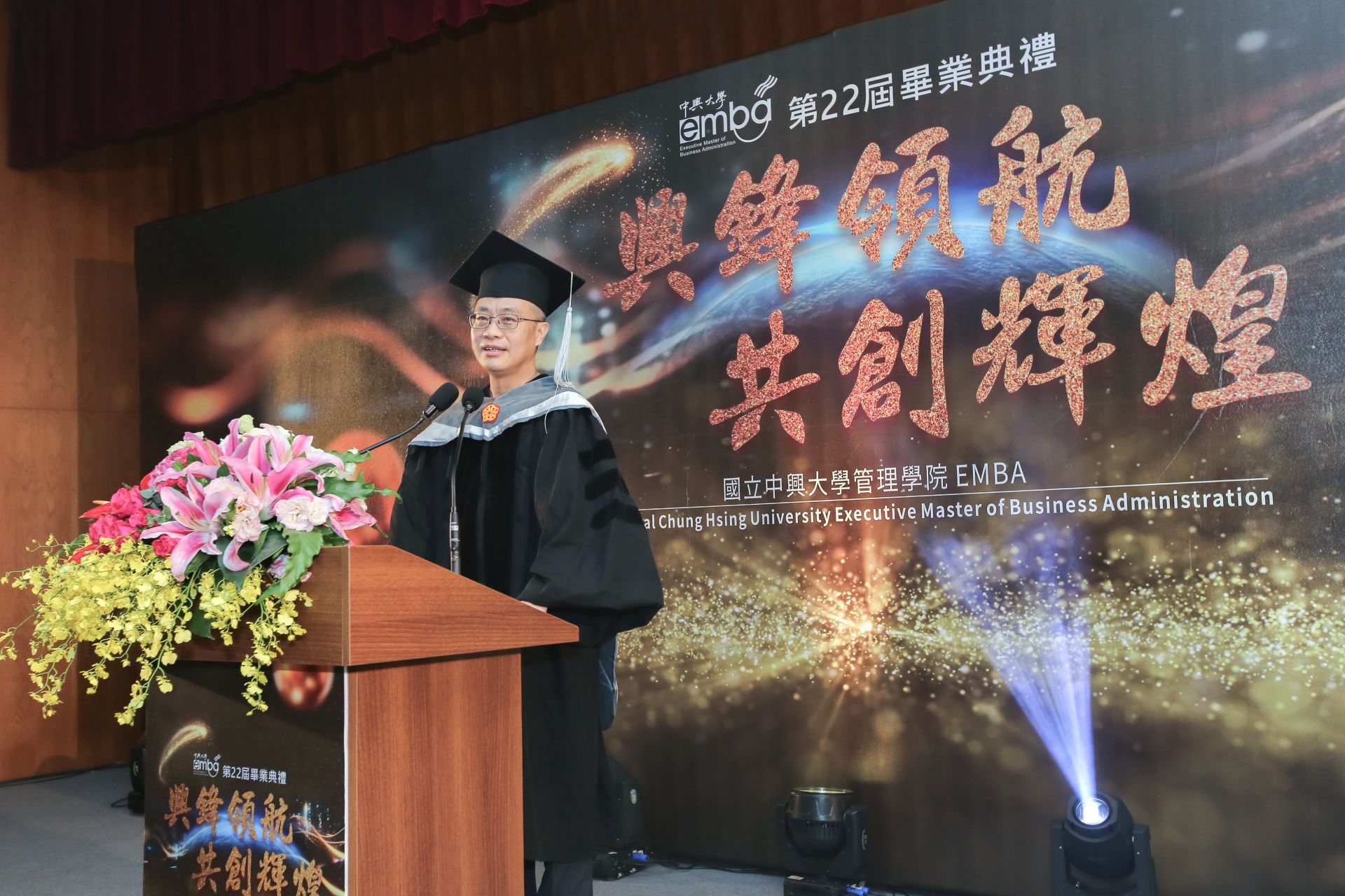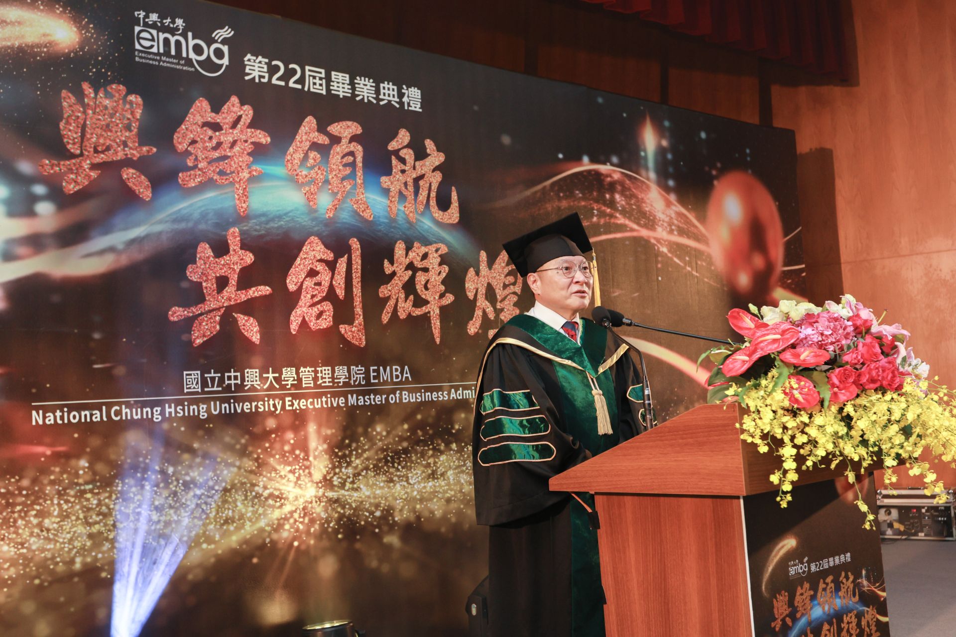 國立中興大學管理學院高階經理人碩士在職專班(EMBA)於6月15日下午隆重舉行第22屆畢業典禮,今年以「興鋒領航 共創輝煌」為主題,為147位完成進修旅程的高階經理人獻上最深祝福。