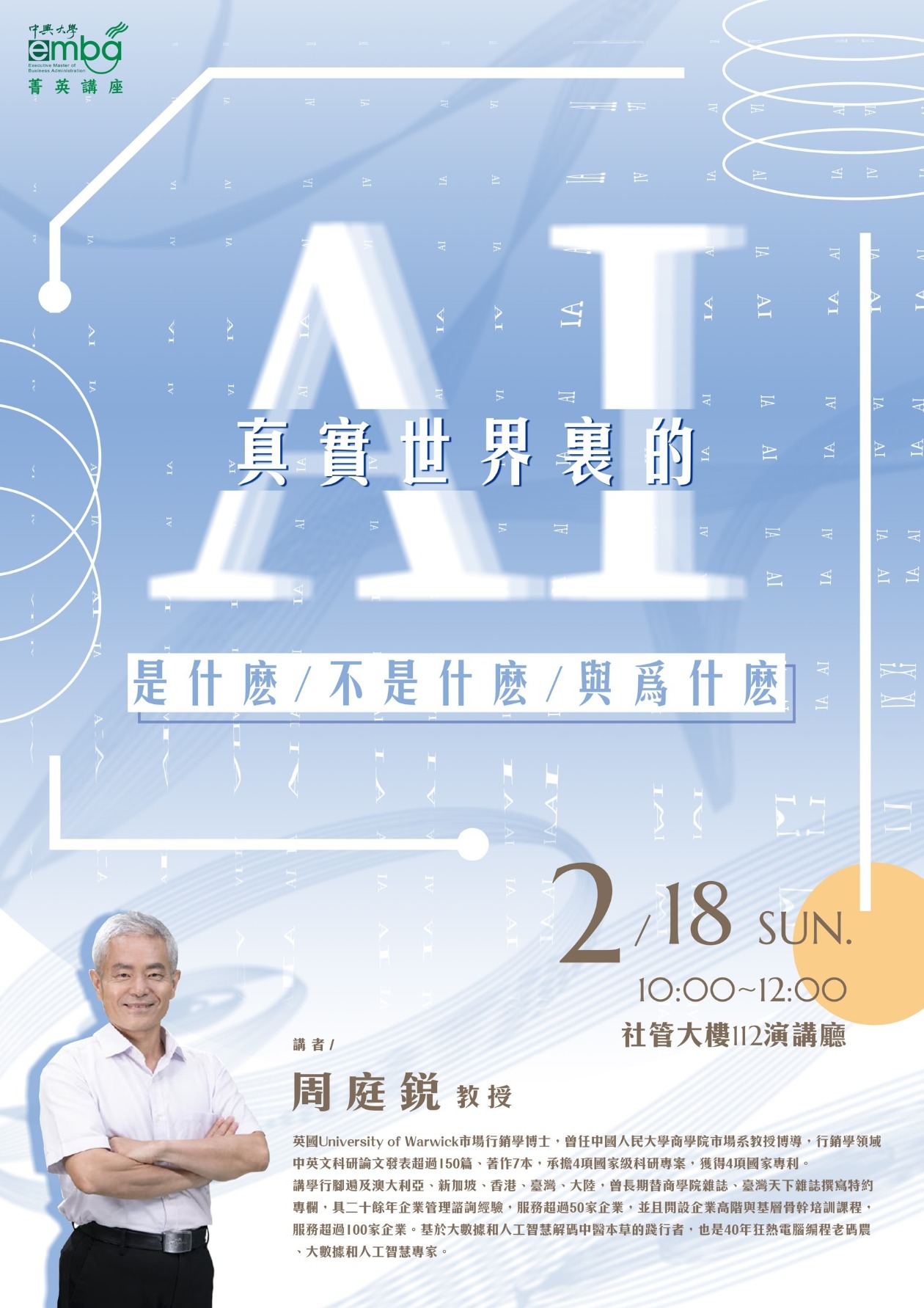 2/18菁英講座【真實世界裡的AI:是什麼、不是什麼、與為什麼】